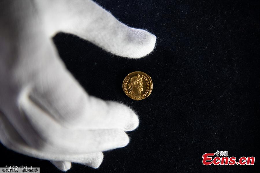 The photo shows a highly rare ancient Roman gold coin which will be auctioned in London in June this year. The incredibly rare gold coin, known as an Aureus, dates from AD 293-296 and bears a depiction of Allectus, who briefly seized control of Britain from the rest of the Roman Empire. (Photo/VCG)