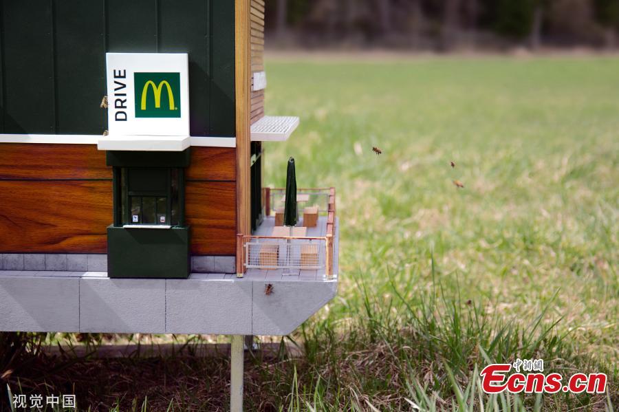 The world’s smallest McDonald’s has opened its doors in Sweden and it has everyone buzzing — literally. Called the McHive, the tiny McDonald’s is not serving burgers and fries to fast-food fans, it’s actually a fully functioning beehive for thousands of bees. The McHive features two drive-thru windows, a patio and outdoor seating, sleek wood panelling, and McDonald’s advertisements on the windows. (Photo/Agencies)