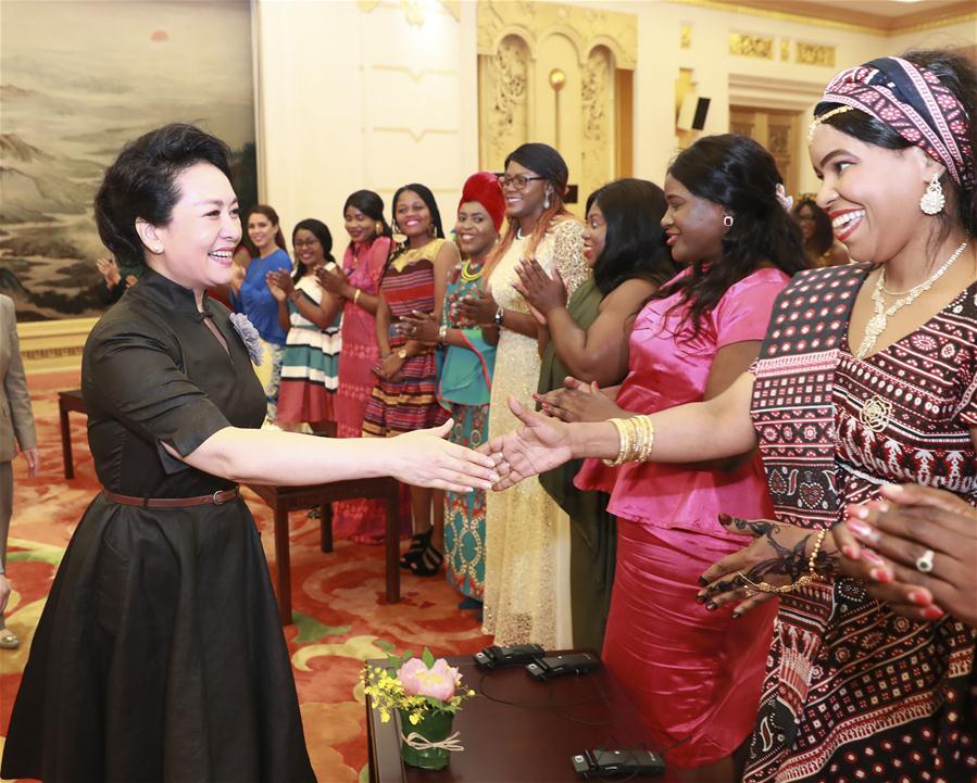 Peng Liyuan, wife of Chinese President Xi Jinping, meets with a group of international graduate students from China Women's University (CWU) at the Great Hall of the People in Beijing, capital of China, May 30, 2019. The students are from CWU's International Master's Program of Social Work in "Women's Leadership and Social Development," established to implement initiatives announced by President Xi at the 2015 Global Leaders' Meeting on Gender Equality and Women's Empowerment. So far, 72 female students from 27 countries have studied under the program. (Xinhua/Pang Xinglei)