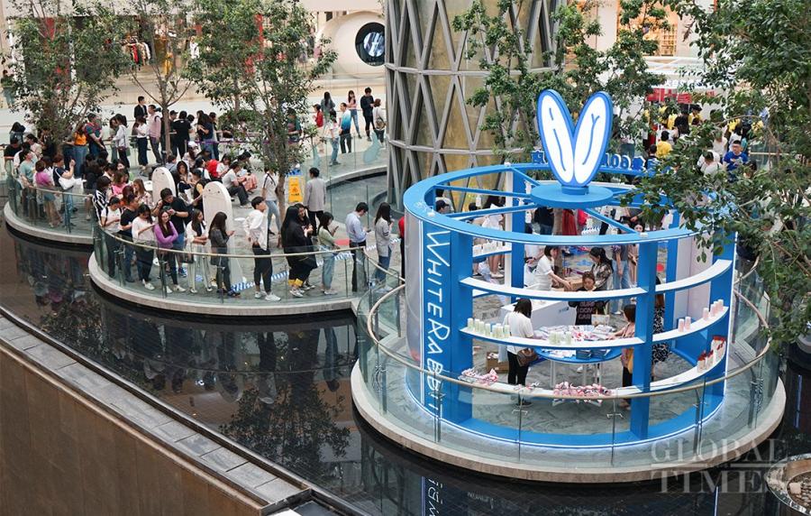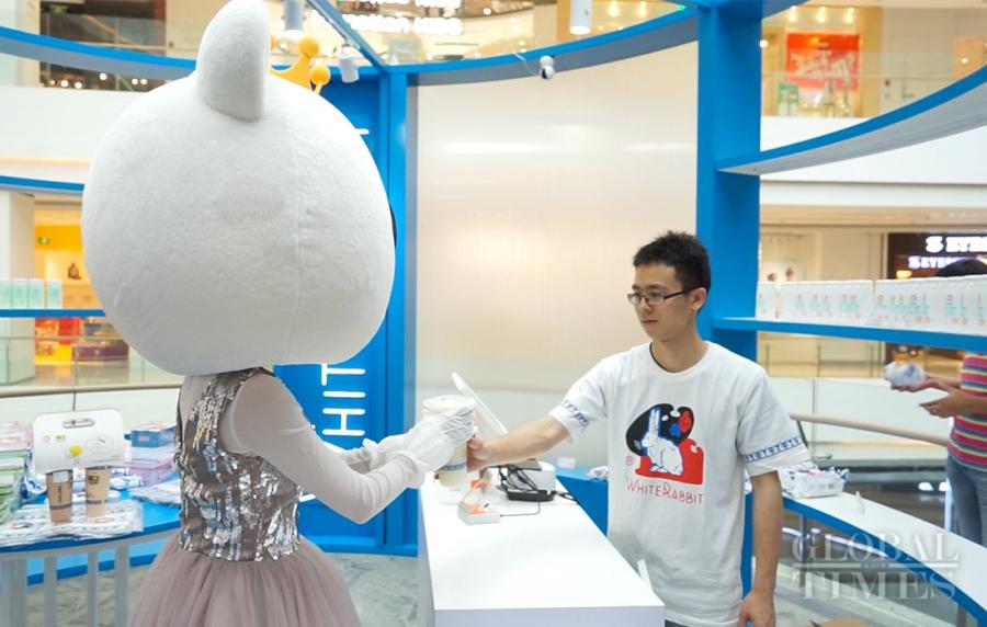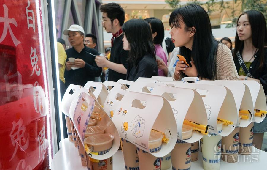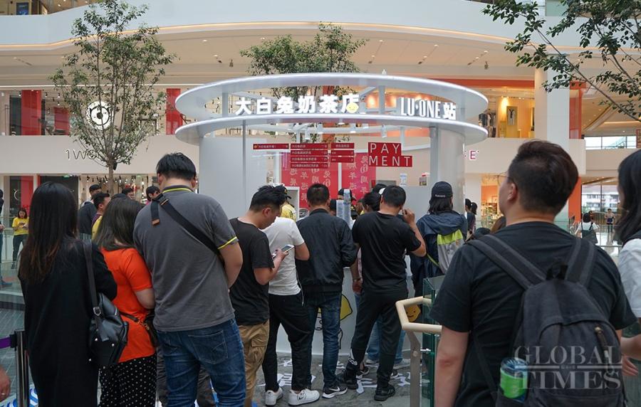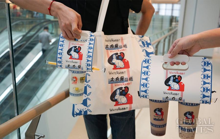 Two pop-up milk tea stores of China's White Rabbit Creamy Candy opened at LuOne in Shanghai. People swarmed to try the new products of this Chinese iconic brand, which recalled their childhood memories. (Photos: Lu Ting/GT)