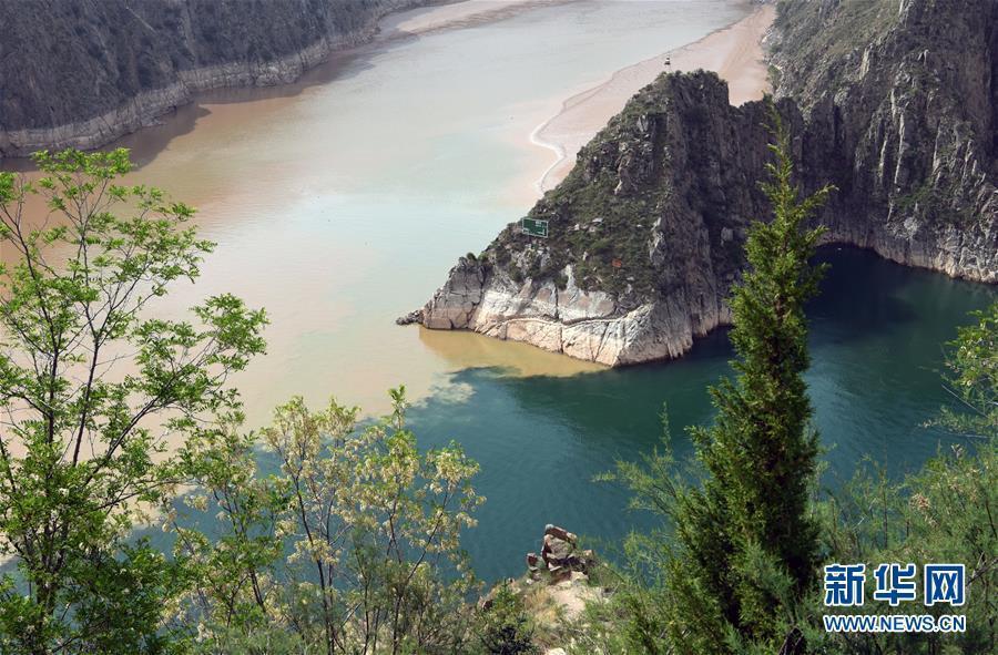 The muddy Yellow River converges with the clearer Taohe River in the Liujiaxia Reservoir in Yongjing County, Northwest China’s Gansu Province, June 2, 2019. (Photo/Xinhua)