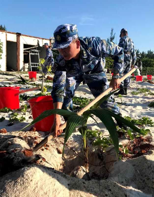 Every member of the People's Liberation Army Navy deployed on Zhongjian Island in the Xisha Islands in the South China Sea is asked to plant a tree on the day they arrive.