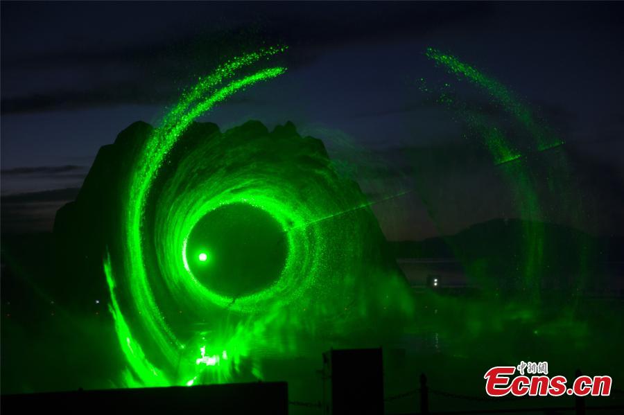 An open-air show at the Wudalianchi Scenic Area in Heilongjiang Province makes innovative use of a 400-sqm water area, lighting, 3D images and fireworks to create a large-scale performance based on a traditional fairytale about two fighting dragons. The name Wudalianchi means "five joint ponds" and refers to a set of interconnected lakes formed after a volcanic eruption. The show is also China’s first volcano-themed open-air cultural show. (Photo: China News Service/Wang Lin)