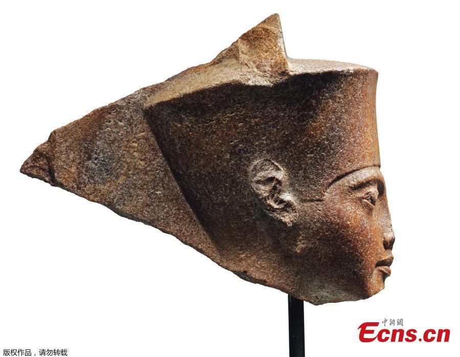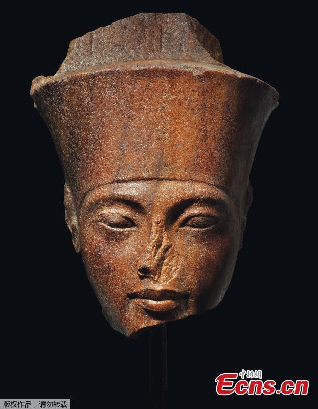 Photo shows an Egyptian head of the God Amen with the features of the Pharaoh Tutankhamen circa 1333-1323 B.C., which is up for auction at Christie's. (Photo/Agencies)