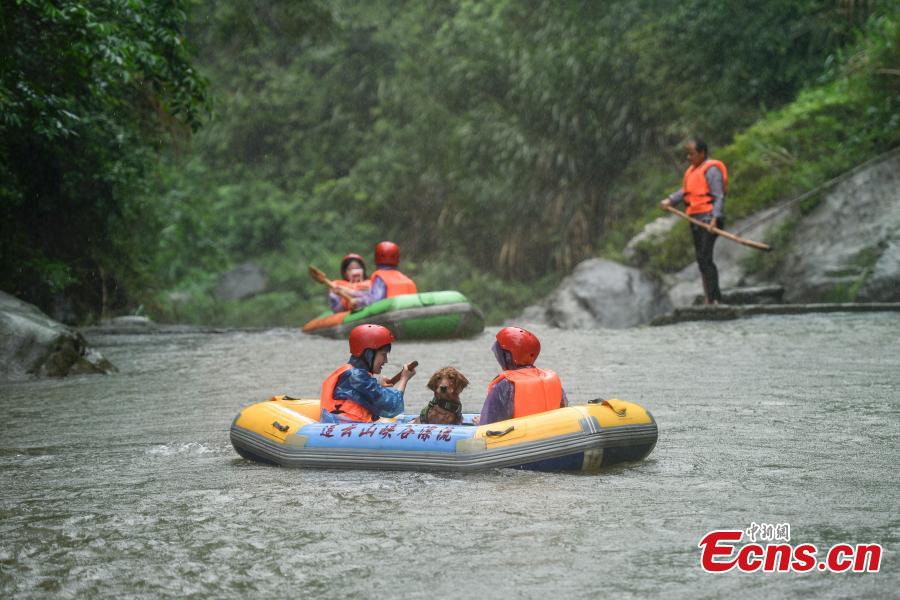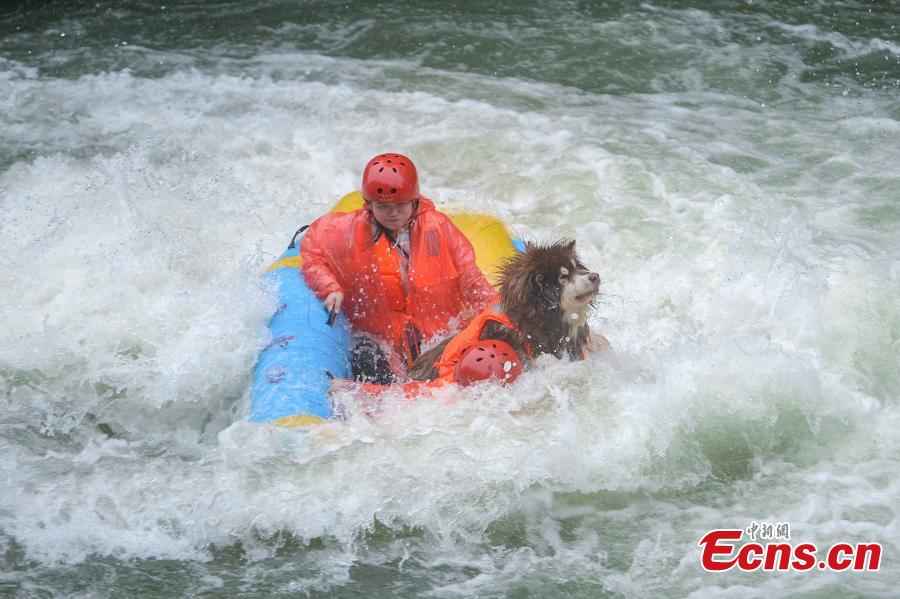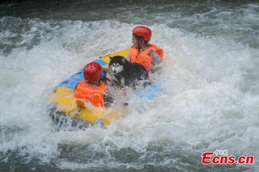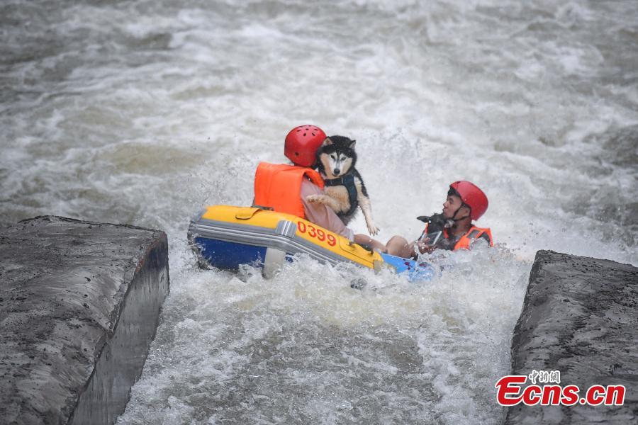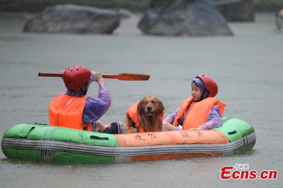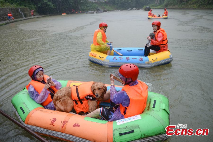 A unique rafting competition with entrants competing together with their canine pals is held in a river in Lianyun Mountain in Pingjiang County, Central China’s Hunan Province, June 12, 2019. The rafting route stretched for eight kilometers. (Photo: China News Service/Yang Huafeng)