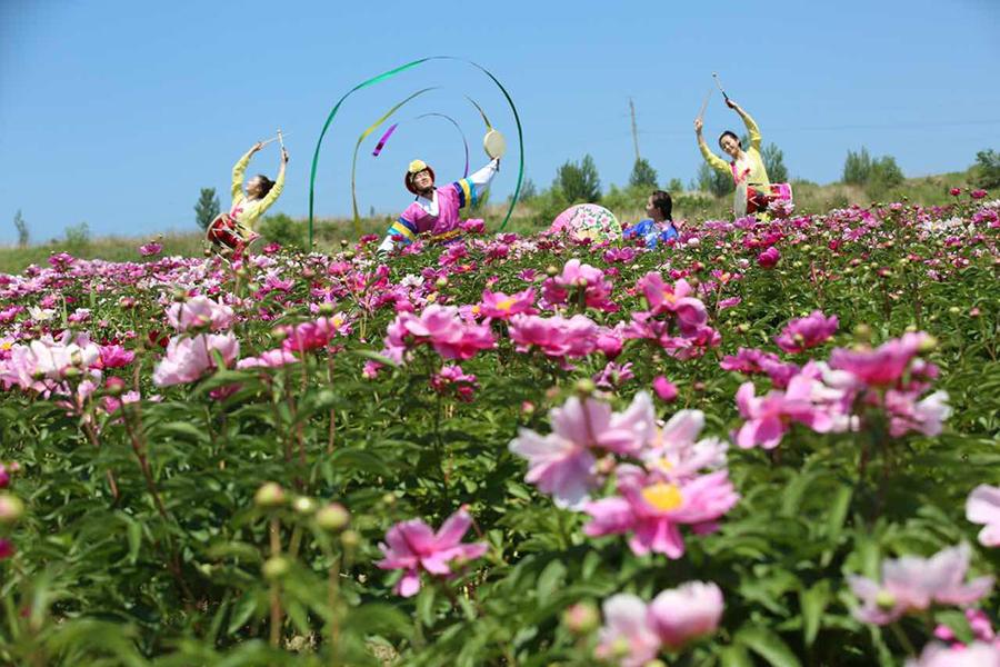 Blooming peonies and Chinese herbaceous peonies are seen in Hunchun city, Northeast China's Jilin Province. The sea of flowers dazzles visitors with gorgeous colors in the early summer. (Photo/China Daily)