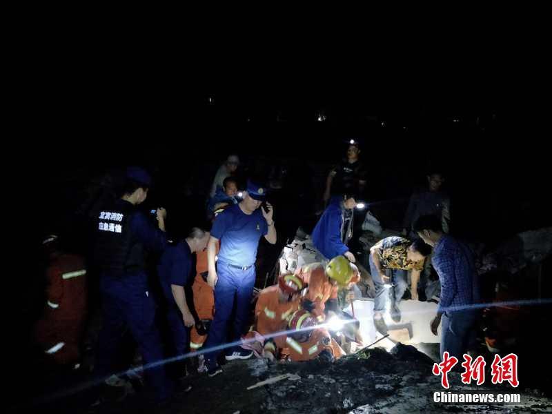 Rescue workers, along with local residents, try to save people buried under the rubble, after an earthquake hit Changning county of Yibin city, Southwest China's Sichuan province, June 18, 2019. (Photo provided to China News Service)