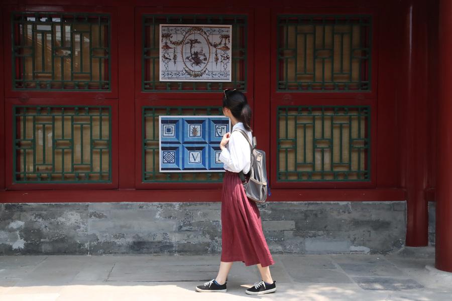 People visit the ongoing show, The Land of the Glazed Cities: 500 Years of Azulejo in Portugal, at the Palace Museum in Beijing. (Photo by JIANG DONG/CHINA DAILY)