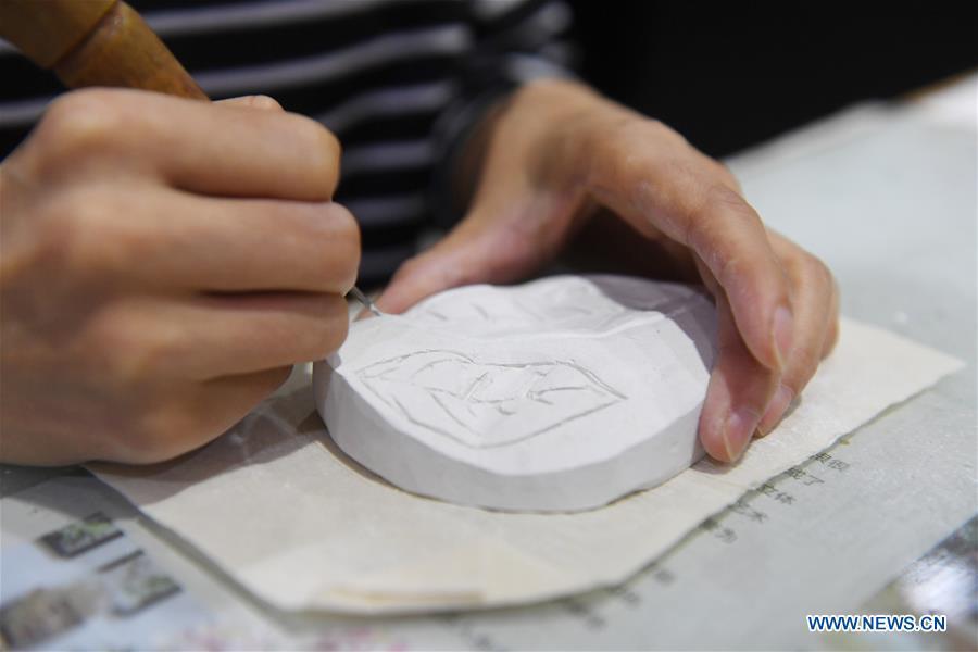 An enthusiast makes models for leaves in Yangzhou, east China's Jiangsu Province, June 18, 2019. Chocolate vine, or akebia quinata, makes a great ingredient of various crafts including artificial flowers. The flower-making is complex, as it contains a series of procedures including bleaching, pasting, shaping and dyeing. Yet, the artificial flowers made from such shrub are vivid and have high value. In 2007, the flower-making techniques were listed as provincial intangible cultural heritage in Jiangsu. Dai Chunfu, 79, has been an inheritor of such art in Yangzhou since his childhood. Dai is skillful with years of experience and has accepted more than 10 apprentices. He welcomes the younger generation to learn this delicate art so as to pass the torch. (Xinhua/Ji Chunpeng)