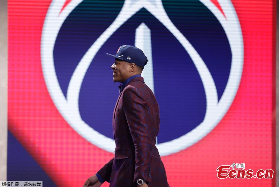 Japan’s Rui Hachimura, of Gonzaga, walks on stage after the Washington Wizards selected him as the ninth pick overall pick in the NBA basketball draft Thursday, June 20, 2019, in New York. (Photo/Agencies)