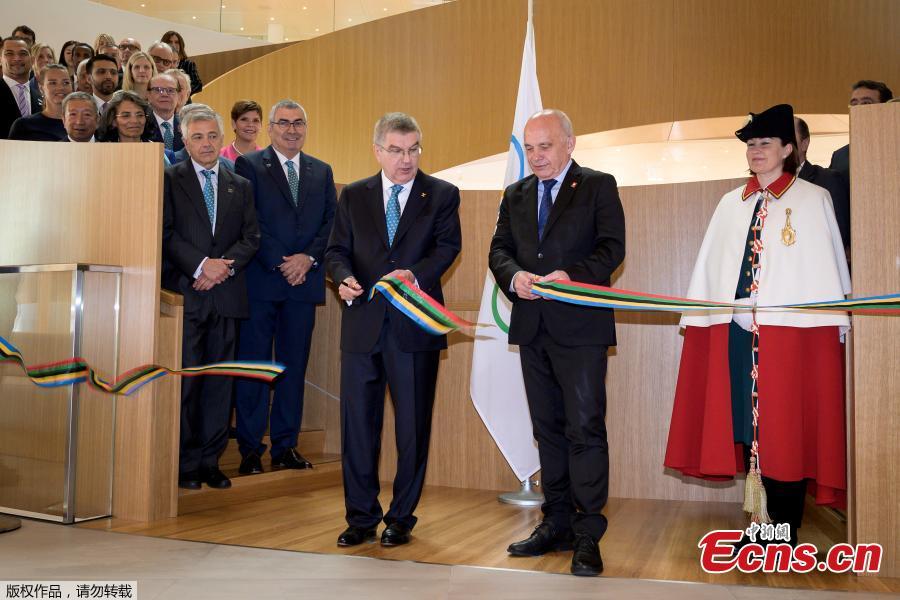 International Olympic Committee (IOC) President Thomas Bach and Swiss President Ueli Maurer cut the ribbon during the inauguration of the new IOC headquarters in Lausanne, Switzerland June 23, 2019.(Photo/Agencies)