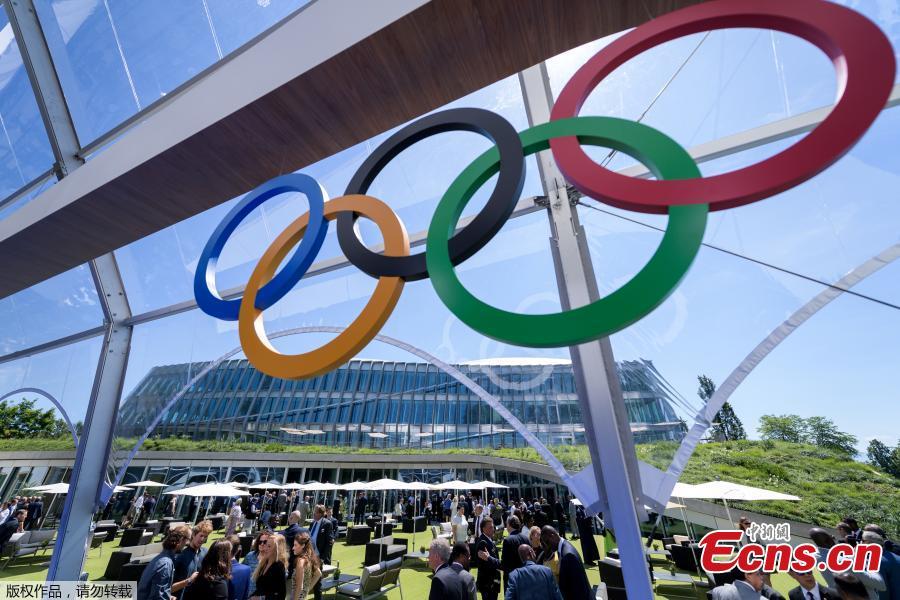 Guest are seen in front of the Olympic House, the new International Olympic Committee (IOC) headquarters, after the inauguration ceremony in Lausanne, Switzlerland June 23, 2019 ahead of the decision on 2026 Winter Games host. (Photo/Agencies)