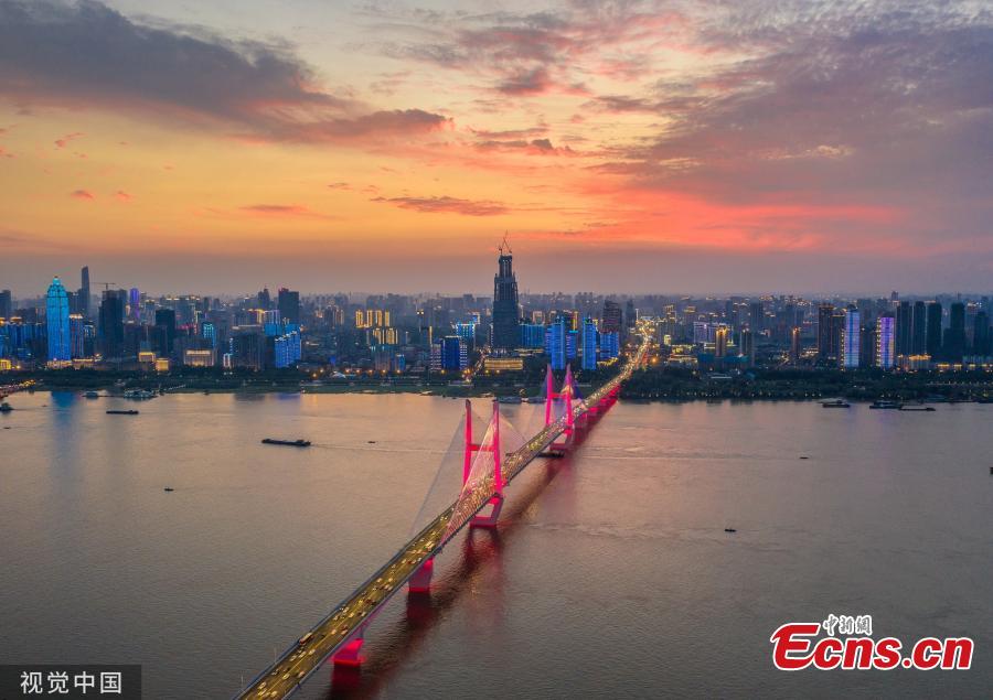 The Second Yangtze River Bridge in Wuhan City, Hubei Province at sunset on June 23, 2019. (Photo/VCG)