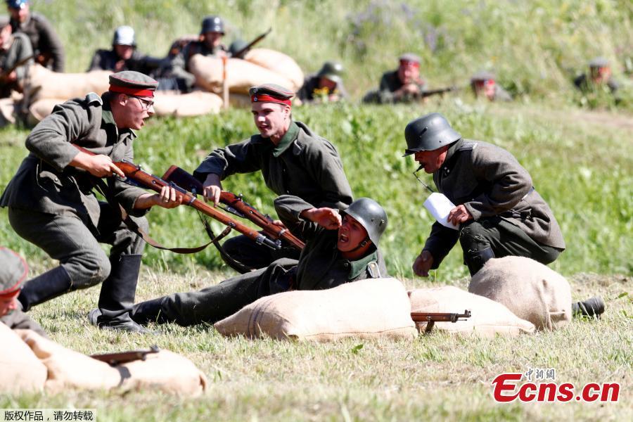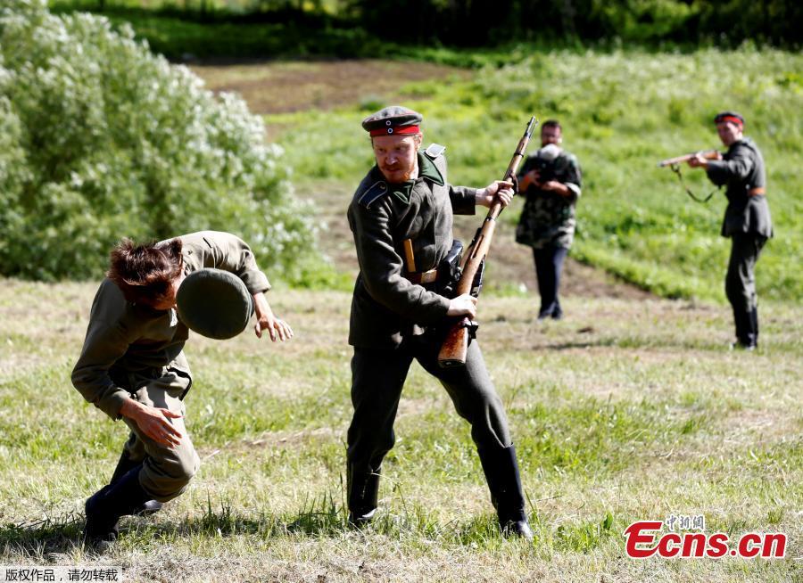 History enthusiasts, dressed as soldiers, fight during a re-enactment of the 1919 battle between Latvian-Estonian forces with German Landeswehr forces, to mark the centenary of this decisive battle in the Estonian War of Independence and the Latvian War of Independence, in Cesis, Latvia June 22, 2019. (Photo/Agencies)