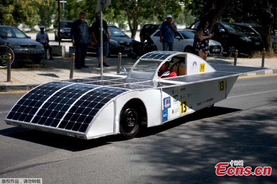 A Cypriot competitor steers his solar car during the Cyprus Institute's solar car challenge in Nicosia on June 23, 2019. The solar car challenge was organized by Cyprus Institute to promote the use of renewable energy. Teams had to design and build a solar car for less than 20 000 euros.(Photo/Agencies)