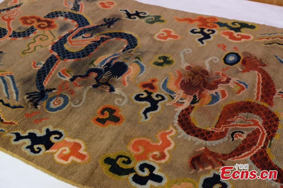 A rug collection donated to the Shanghai Museum by Martin Posth (1944-2017), who was born in the Havelland region of Brandenburg, Germany, June 24, 2019. In his will, Martin Posth donated 45 ancient Chinese blankets, featuring a variety of patterns and which he collected in the 1980s, to the museum. (Photo: China News Service/Wang Ji)