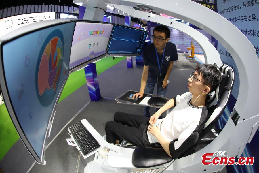 An exhibition of cutting-edge technologies and applications at the Nanjing International Exhibition Center in Nanjing City, Jiangsu Province, June 26, 2019. As part of Nanjing Tech Week, the exhibition showcased new technologies, such as driverless cars and smart furniture, offered by more than 400 global high-tech companies. (Photo: China News Service/Yang Bo)