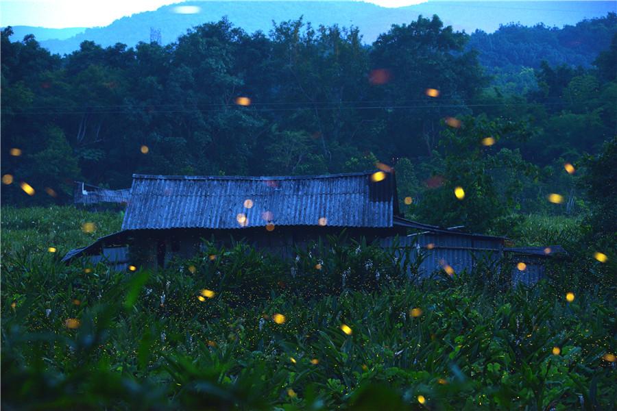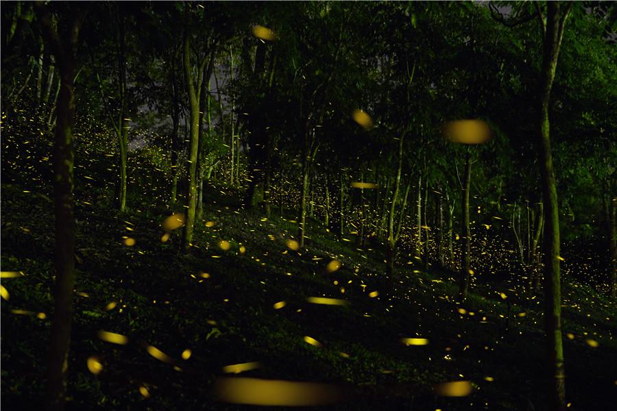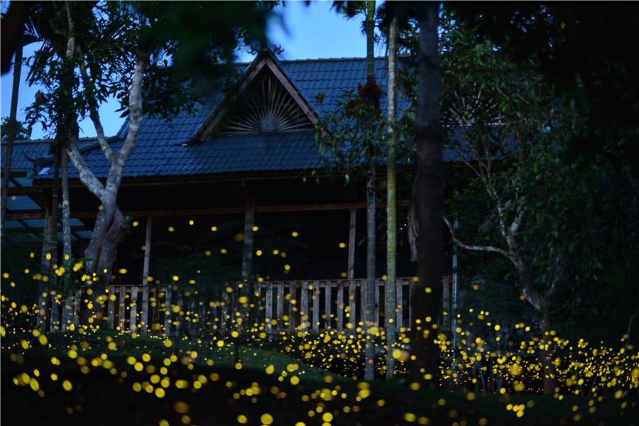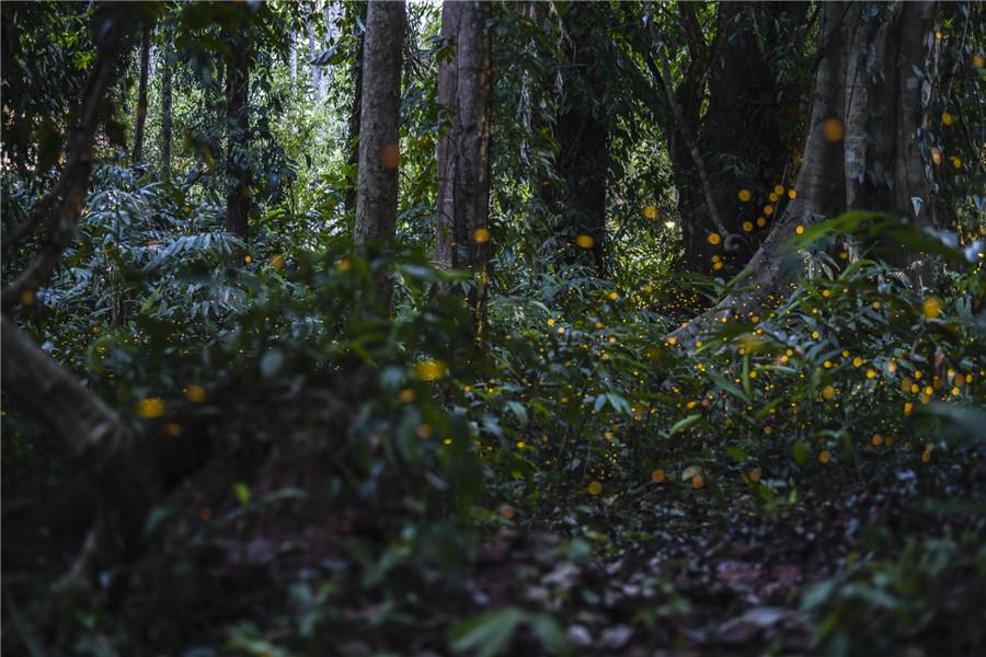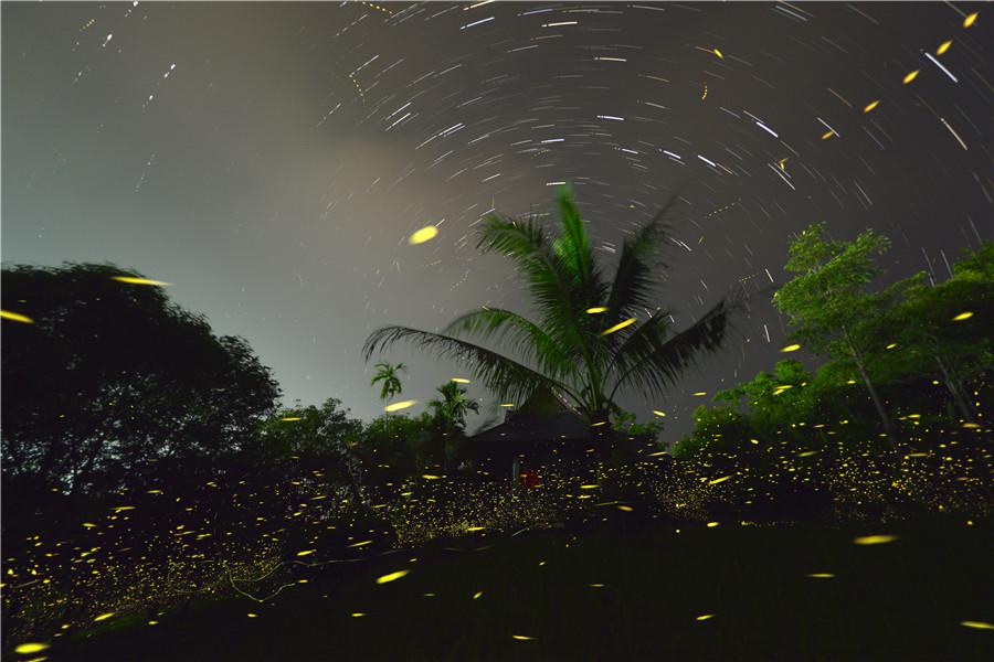 The sparkling firefly dances in the botanic garden in Xishuangbanna Dai autonomous prefecture in Yunnan. (Photo provided to chinadaily.com.cn)
