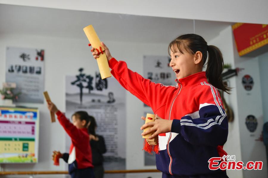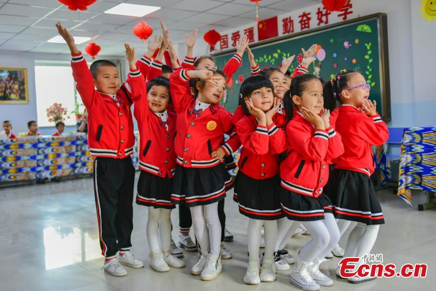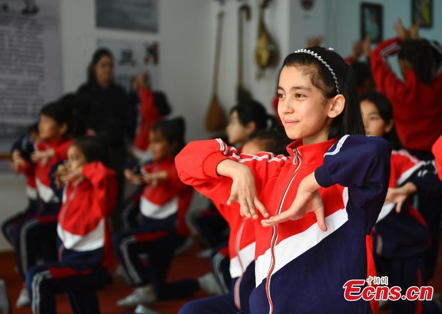 Students from poverty-stricken families perform in a class at a community in Saybag District, Urumqi City. Local authorities are offering free courses on art and culture to enhance the education of children from poor families. (Photo: China News Service/Zhang Xinglong)