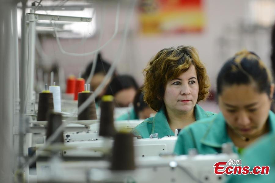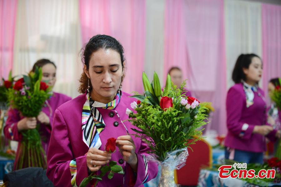 Local residents at a workshop in a community in Saybag District, Urumqi City, Northwest China's Xinjiang Uygur Autonomous Region, June 12, 2019. The residential community established in 2012 is home to many low-income earners who mainly live in affordable housing. To improve employment, authorities have offered training programs on producing handmade flowers and sewing, and invested nearly 3 million yuan to build a 1,200-square-meter factory, enabling local residents to find jobs at their doorstep. (Photo: China News Service/Zhang Xinglong)
