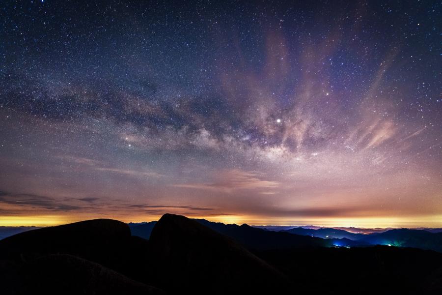 A starry night on Jiuxian Mountain in East China's Fujian Province. (Photo by Huang Guying and Lai Jianming for China Daily)