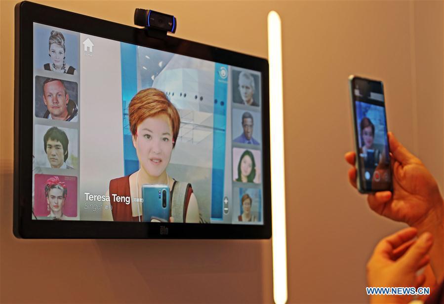 A delegate experiences a biometric mirror at an exhibition space of the 2019 Summer Davos in Dalian, northeast China's Liaoning Province, July 1, 2019. The 2019 Summer Davos forum will be held from July 1-3 in northeast China's coastal city of Dalian, with globalization in the spotlight. Also known as the 13th Annual Meeting of the New Champions, this year's forum will feature the theme "Leadership 4.0: Succeeding in a New Era of Globalization." (Xinhua/Yang Qing)