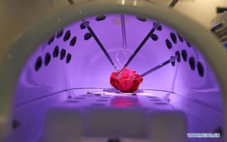 A robot surgeon gives a demonstration at an exhibition space of the 2019 Summer Davos in Dalian, northeast China's Liaoning Province, July 1, 2019. The 2019 Summer Davos forum will be held from July 1-3 in northeast China's coastal city of Dalian, with globalization in the spotlight. Also known as the 13th Annual Meeting of the New Champions, this year's forum will feature the theme "Leadership 4.0: Succeeding in a New Era of Globalization." (Xinhua/Yang Qing)