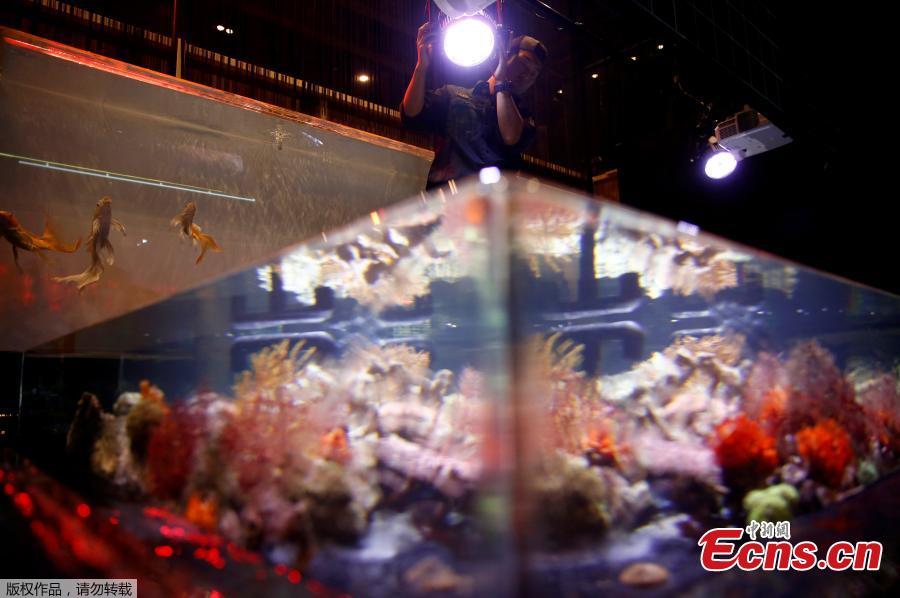 Installations using goldfish in illuminated tanks are displayed at the Art Aquarium exhibition in Tokyo, Japan, 2019. (Photo/Agencies)