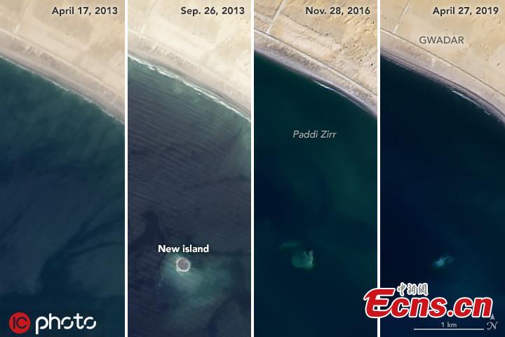 After a 7.7 magnitude earthquake shook western Pakistan in September 2013, an oval-shaped island sprang up in a shallow bay near the port city of Gwadar. The island, called Zalzala Koh (Earthquake Mountain in Urdu) was the product of a mud volcano triggered by the earthquake. At the time, geologists said the tiny island—20 meters high, 90 meters wide, and 40 meters long—would not last long when faced with waves and tides that would chip away at the muddy, silty feature. (Photo/IC)
