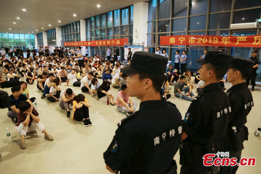 A total of 543 suspects have been detained by police after a crackdown on pyramid schemes in Naning City, South China’s Guangxi Zhuang Autonomous Region, July 9, 2019. Authorities have also frozen 21.65 million yuan ($3.1 million) as part of the operation, which involved more than 2,000 law enforcement personnel. (Photo: China News Service/Lao Yunrong)