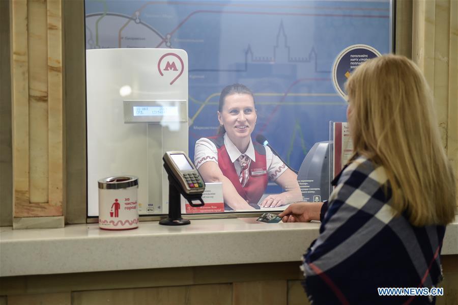 A passenger buys the limited edition of Moscow metro card Troika with a giant panda image in Moscow, Russia, on July 10, 2019. Moscow subway released a limited edition of 10,000 metro cards with Chinese giant panda images to mark the 155th anniversary of Moscow Zoo that accepted two giant pandas Ru Yi and Ding Ding in late April from China. (Xinhua/Evgeny Sinitsyn)