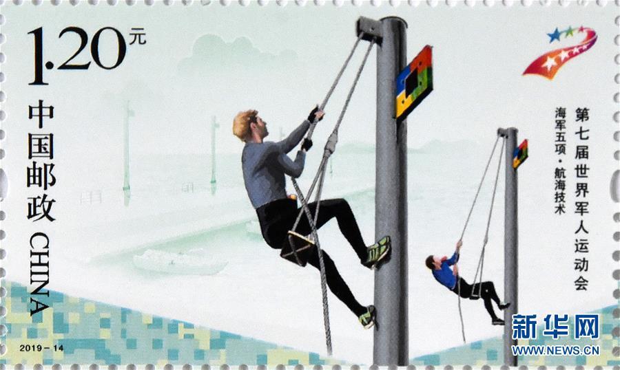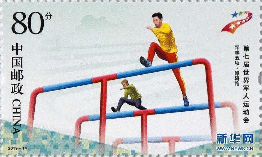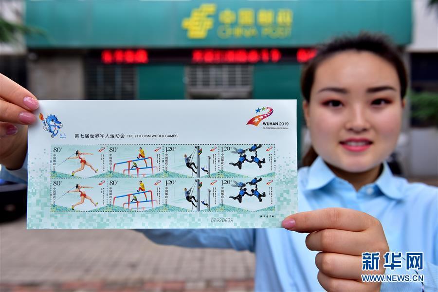 Photo shows the commemorative stamp for the seventh CISM Military World Games released by China Post, July 10, 2019. The military games will be held in Wuhan on October 18 - 27. The games, which began in 1995, are a multi-sport event for military sportspeople that is organized by the International Military Sports Council. Held every four years and lasting for 7 to 10 days, more than 100 countries participate in the games. (Photo/Xinhua)