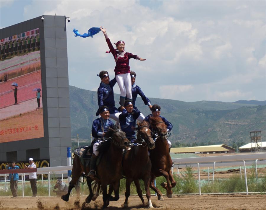 Equestrians demonstrated their riding skills in performance at the Equestrian Events of the 11th Traditional Games of Ethnic Minorities of China in Hohhot, Inner Mongolia autonomous region, on July 14.
