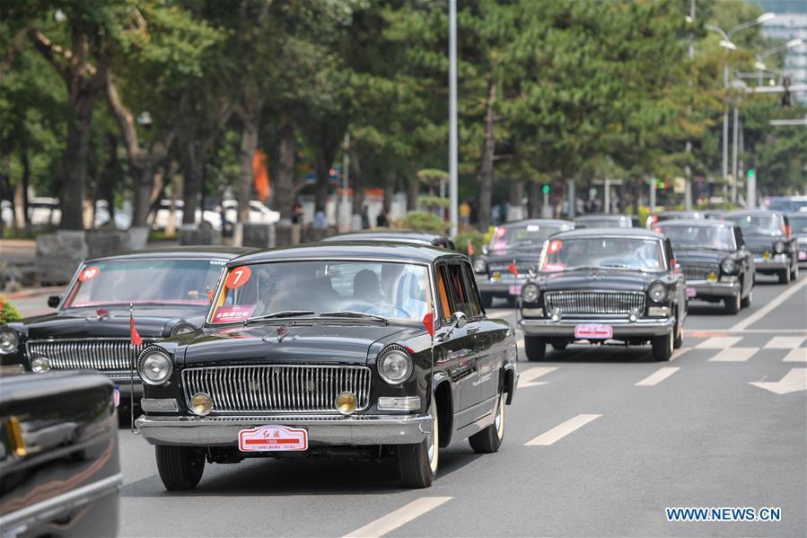 Hongqi brand cars move in a parade on an avenue in Changchun, northeast China's Jilin Province, July 14, 2019. (Xinhua/Zhang Nan)