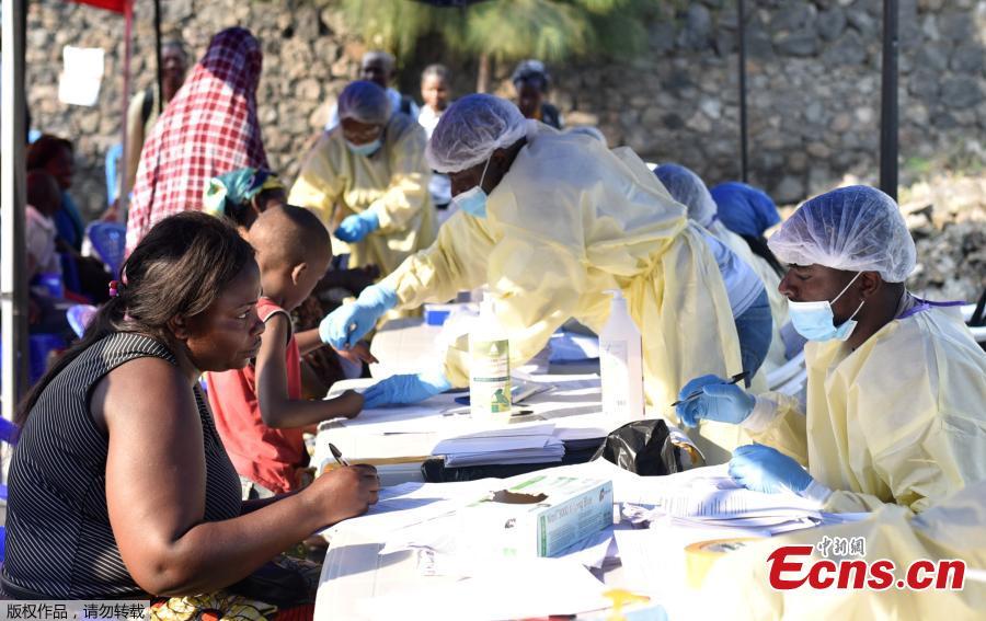 Congolese health workers collect data before administering ebola vaccines to civilians at the Himbi Health Centre in Goma, Democratic Republic of Congo, July 17, 2019. (Photo/Agencies)