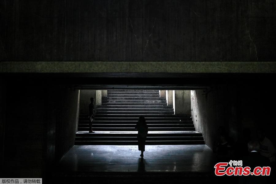 A man uses a flashlight to illuminate a woman boarding her car at a parking garage during a blackout in Caracas, Venezuela July 22, 2019. (Photo/Agencies)