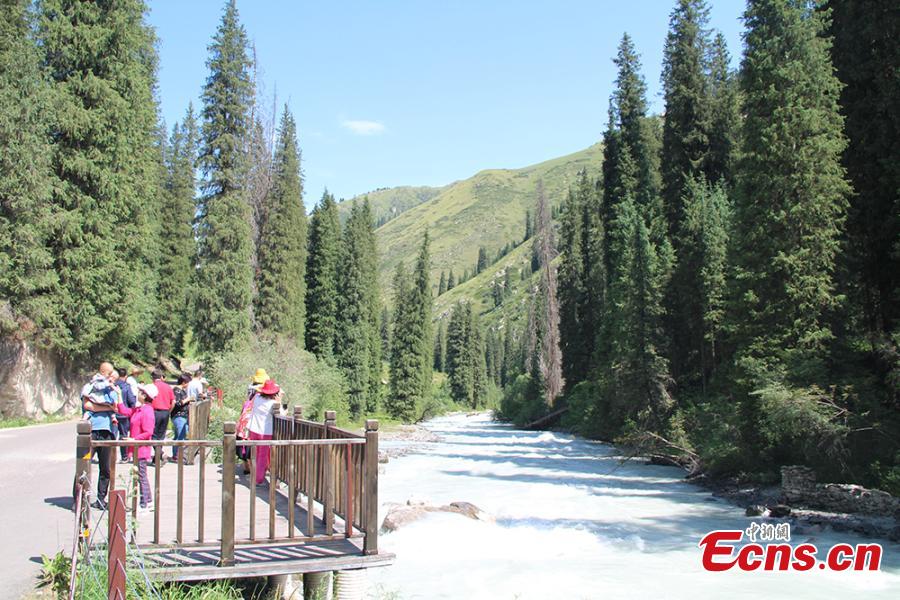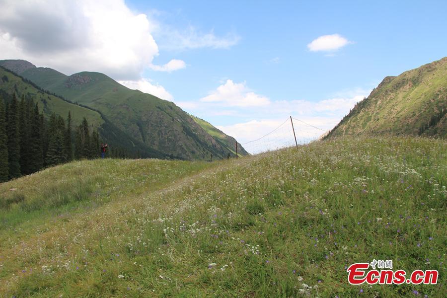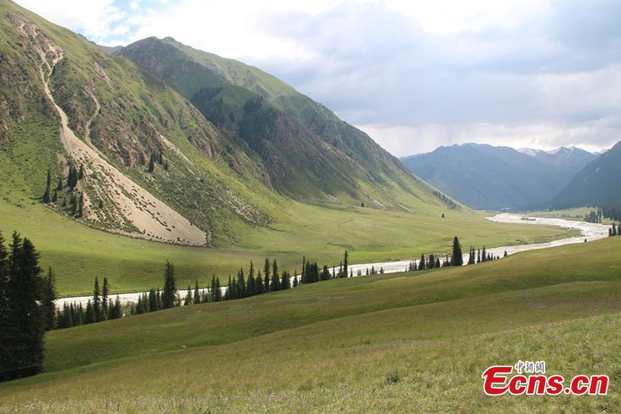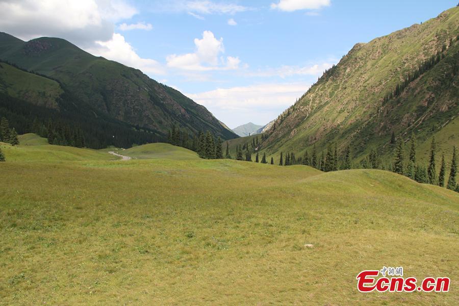 A view of the scenic Xiata Grassland, 70 kilometers from Zhaosu County in Northwest China’s Xinjiang Uygur Autonomous Region. A popular tourist attraction, Xiata scenic area boasts canyons, glaciers, and hot springs among its natural treasures, and is home to ancient trade roads and ruins. It's also a popular hiking destination in China. (Photo: China News Service/Qi Yaping)