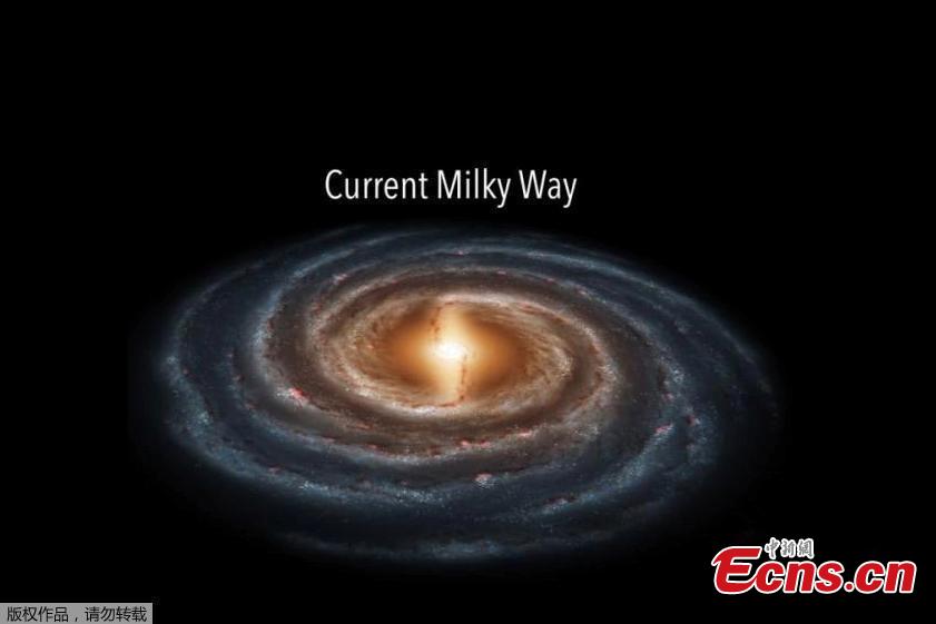 The current appearance of the Milky Way galaxy (R) is shown in this artist's conception released by Instituto de Astrofisica de Canarias in La Laguna, Spain on July 22, 2019. (Photo/Agencies)