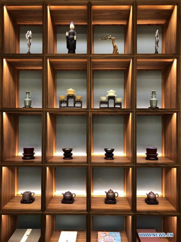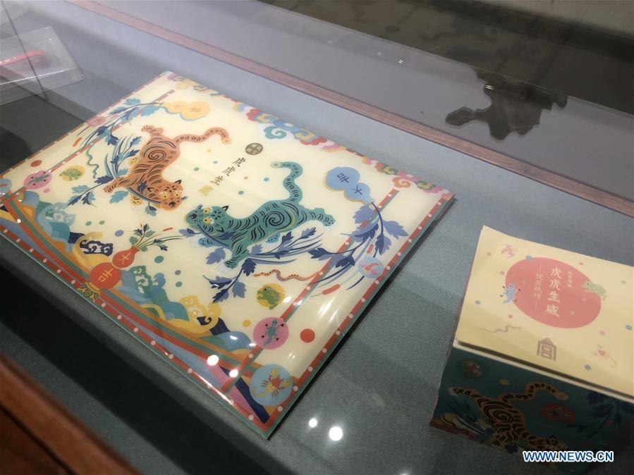 Photo taken with a mobile phone shows cultural and creative products displayed at the Forbidden City Gallery in the Palace Museum in Beijing, capital of China, July 22, 2019. (Xinhua/Wang Junlu)