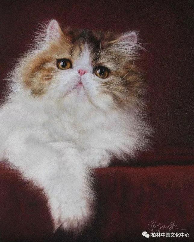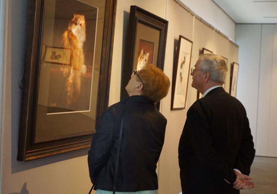 An exquisite embroidery work of a cat on display at the China Cultural Center in Berlin, July 5, 2019. (Photo/Chinaculture.org)
