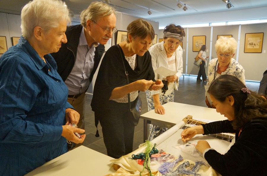 Visitors discover a display of Chinese embroidery at the China Cultural Center in Berlin, July 5, 2019. (Photo/Chinaculture.org)