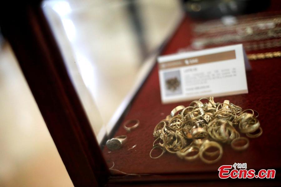 People look at jewels seized by Mexican authorities from drug dealers before these are auctioned at the Los Pinos Cultural Center in Mexico City, Mexico, July 23, 2019. (Photo/Agencies)
