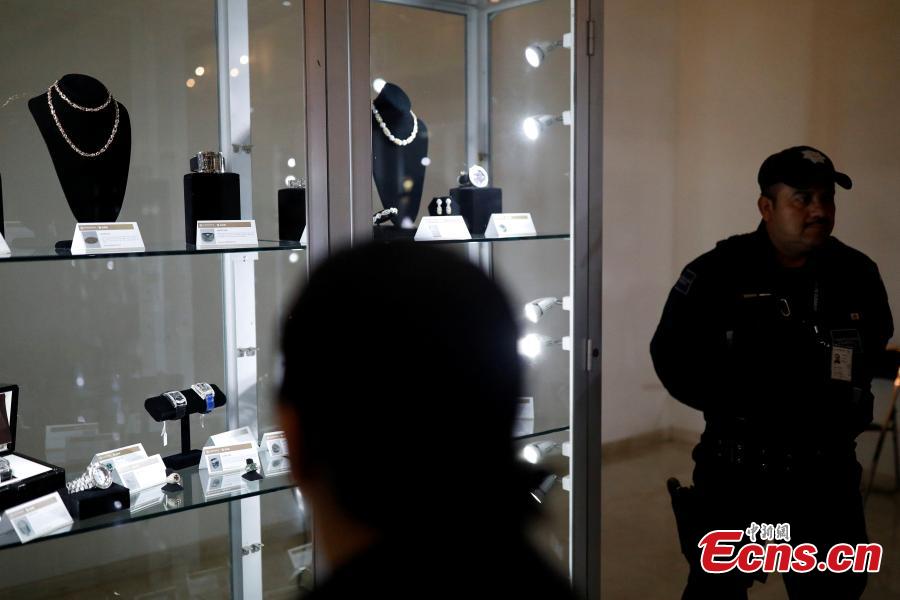 Jewels seized by Mexican authorities from drug dealers are displayed before these are auctioned at the Los Pinos Cultural Center in Mexico City, Mexico, July 23, 2019. (Photo/Agencies)
