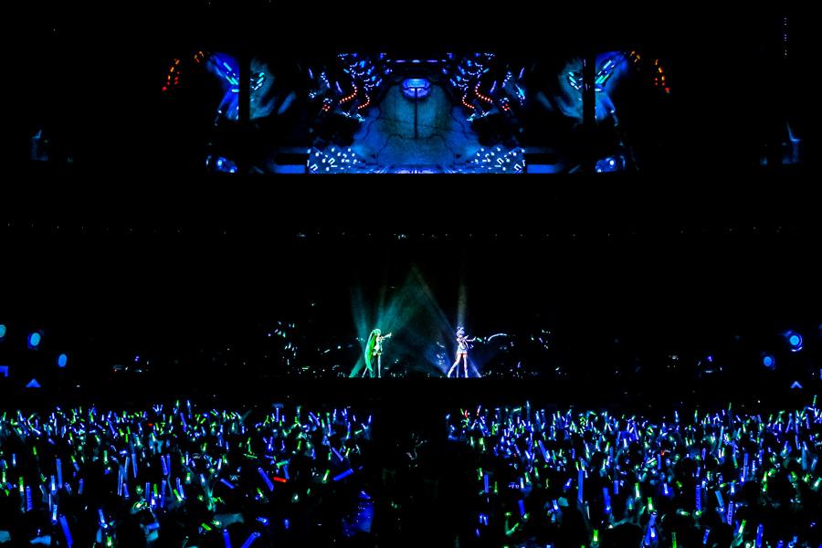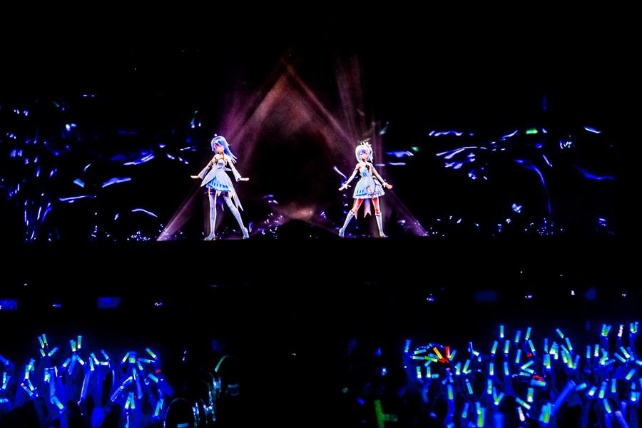 Hatsune Miku (left) and Luo Tianyi share a song at the BML holographic concert in Shanghai on July 19, 2019. (Photo provided to chinadaily.com.cn)