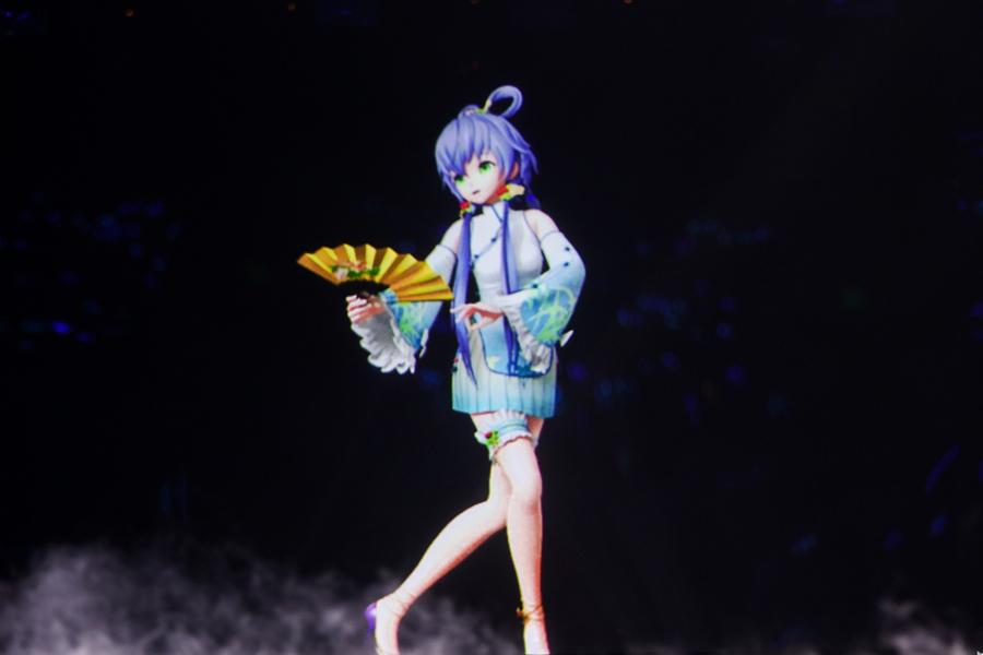 Japanese idol Hatsune Miku sings on stage at the BML holographic concert in Shanghai on July 19, 2019. (Photo provided to chinadaily.com.cn)