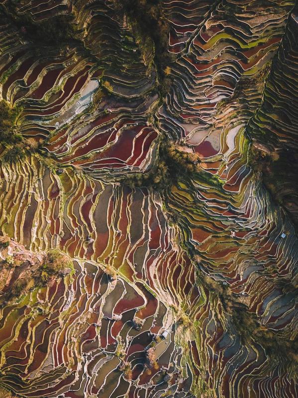 In a photograph taken from above by Jord Hammond, the Yuanyang Rice Terraces in Yuanyang county of Honghe prefecture, Southwest China's Yunnan province seem to be part of a colorful mosaic.(Photo provided to chinadaily.com.cn)