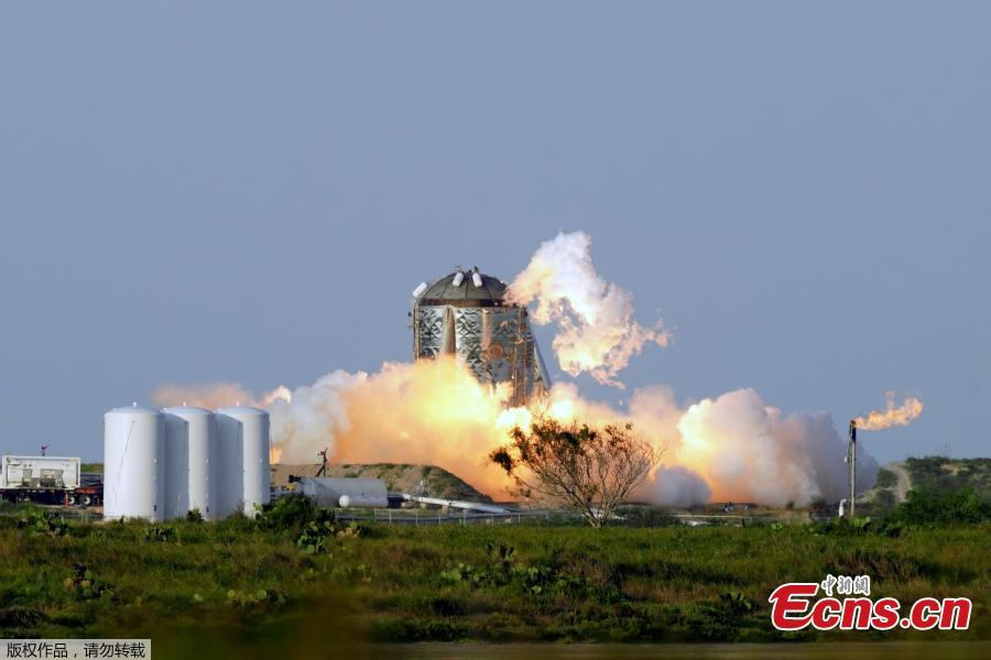 SpaceX performs an untethered test of their company's Raptor engine mounted on a Starhopper rocket at their facility in Boca Chica, near Brownsville, Texas, U.S. July 24, 2019. (Photo/Agencies)