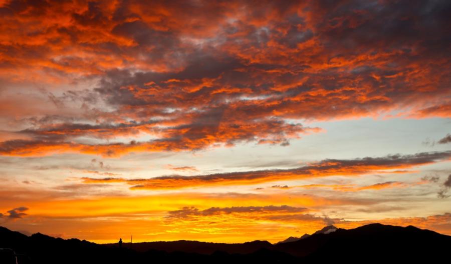 The orange glow of sunset creates a spectacular view of the sky over Danxia National Geological Park in Zhangye, Northwest China's Gansu Province. (Photo provided to chinadaily.com.cn)