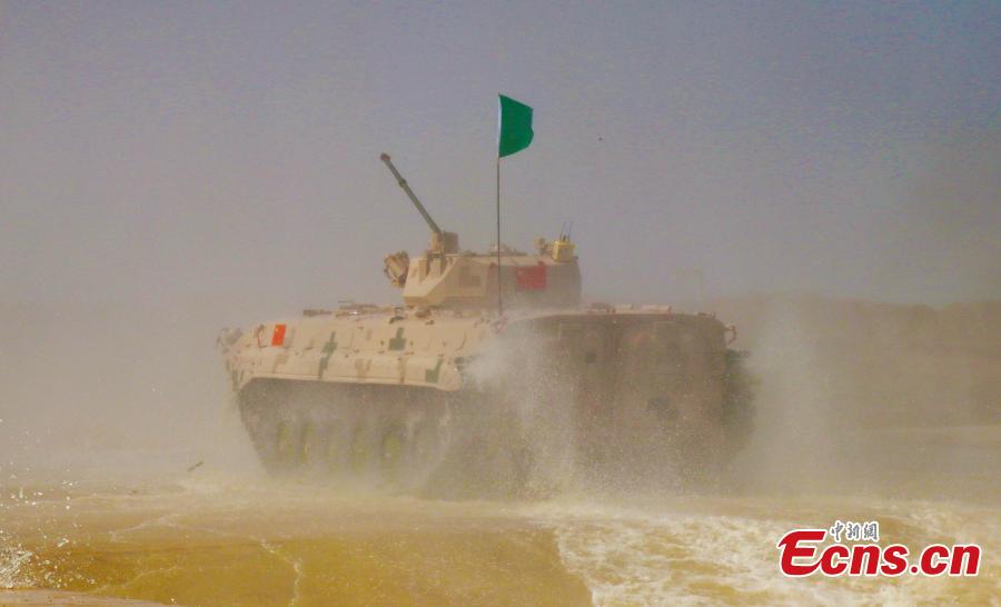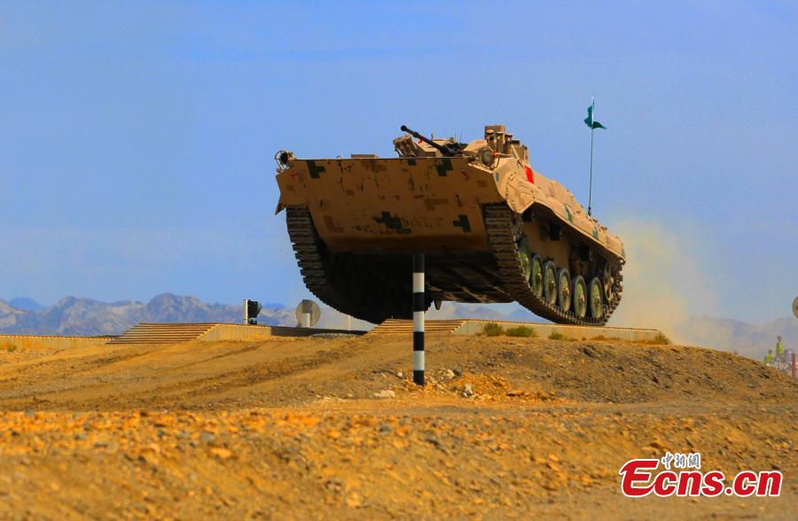 An infantry combat vehicle belonging to the PLA Army competes in a race as part of the International Army Games 2019 held in Korla, Northwest China's Xinjiang Uygur Autonomous Region, Aug. 4, 2019. China placed first place in the competition that also involved vehicles from Zimbabwe and Iran. The Chinese army has taken part in the games since 2014 and became a host in 2017. (Photo: China News Service/Wang Xiaojun)