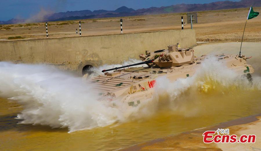 An infantry combat vehicle from Iran competes in a race as part of the International Army Games 2019 held in Korla, Northwest China's Xinjiang Uygur Autonomous Region, Aug. 4, 2019. China placed first place in the competition that also involved vehicles from Zimbabwe and Iran. The Chinese army has taken part in the games since 2014 and became a host in 2017. (Photo: China News Service/Wang Xiaojun)